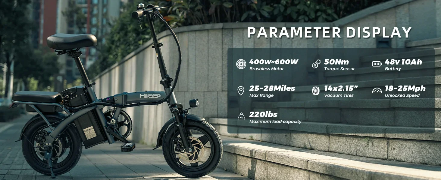【High Quality Motor & Battery Durability】 The electric bike for adults is equipped with 48V 10Ah high capacity lithium battery, can travel 25/35 miles, easily enough for your day's use, and our small electric bike is removable The battery has the characteristics of long life, high durability, anti-theft and convenience. The high-quality Peak 600W motor of folding ebike can reach a maximum speed of 18/28 Mph, which can easily conquer 25% slope