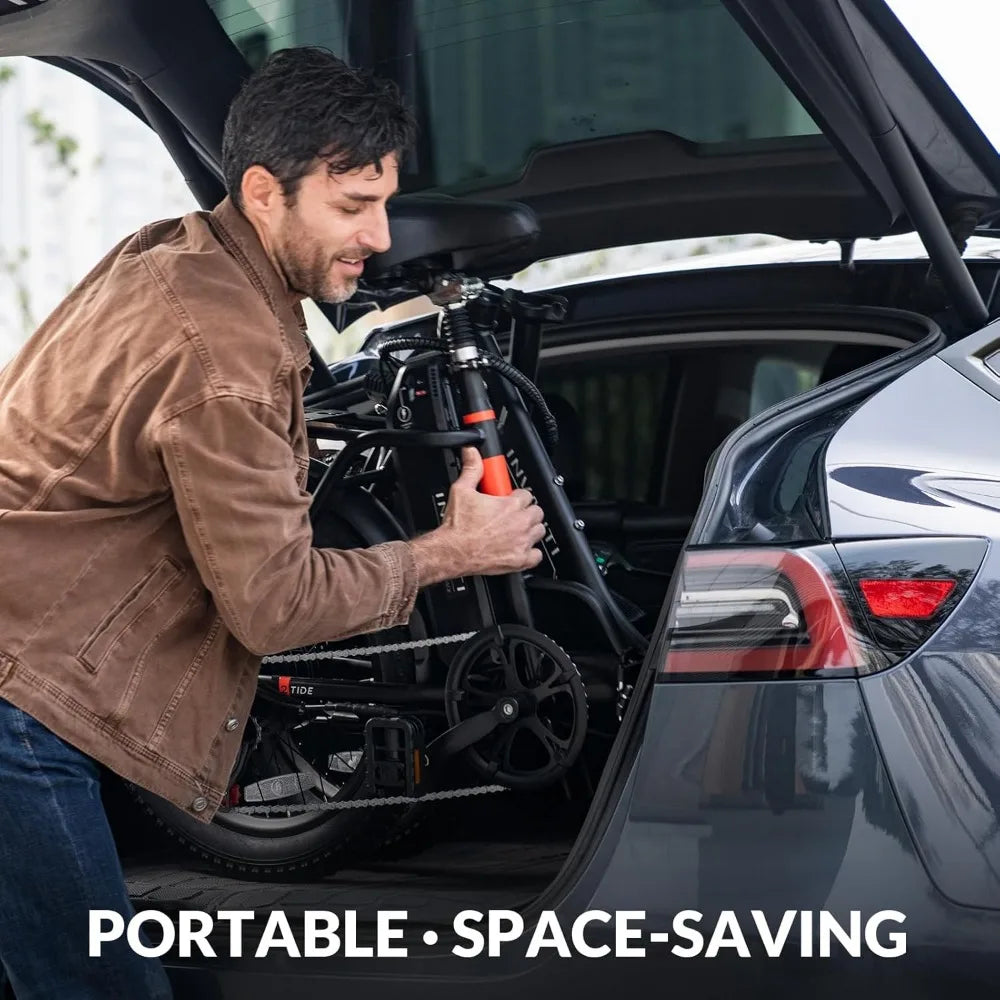 - Foldable and Portable Design - INVANTI folding e-bike adopts a height-adjustable seat and handlebar, allowing for personalized comfort on extended journeys. With a folded size of 33.6*17.3*27.8 inch, weight only 60.6 lbs. The E-bike is easy to carry and is your top choice for convenient travel.