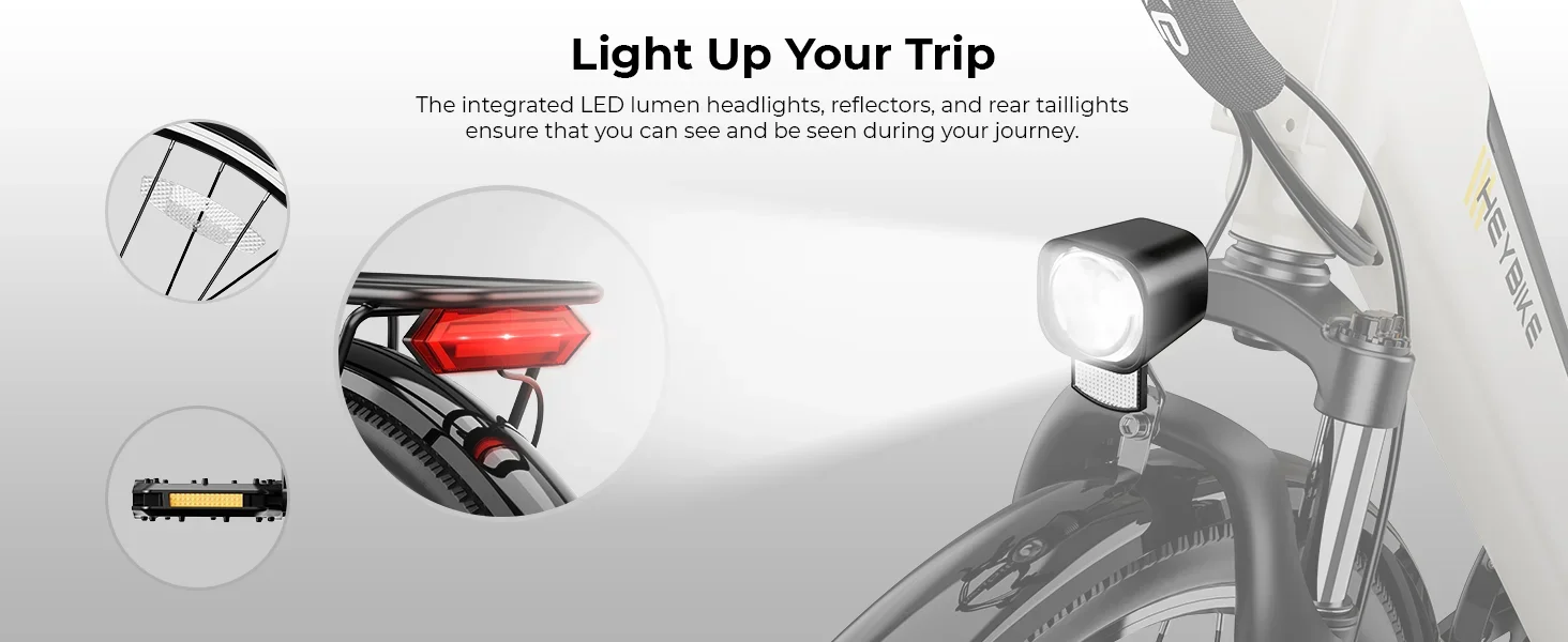 Premium Features-Cityscape 2.0, with its state-of-the-art 7-speed and effective suspension, elevates your riding comfort to new heights, providing unprecedented control over your electric bike. The outstanding dual-disc brakes and lighting system comprehensively safeguard your safety.