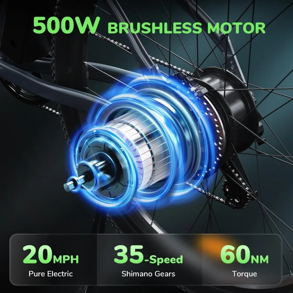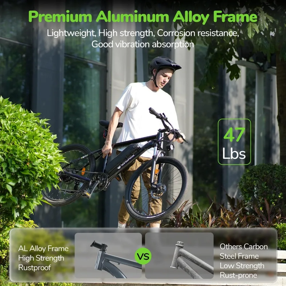 【Powerful 500W Motor & Extremely Long Range】The men electric bike for adults adopts a 500W high-speed motor, producing a top speed of up to 20MPH. The M10 e-bike is capable of achieving 39-43 miles in full electric mode and 45-55 miles in pure pedal assist mode (PAS mode). Your mountain adventure and daily commute will be faster and more cost-efficient.