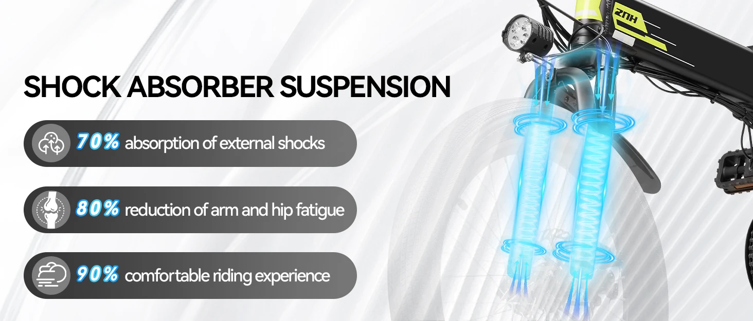 Crafted with a lightweight yet sturdy aluminum alloy frame, this fat tire e-bike features dual disc brakes and a front suspension fork for smooth handling on any surface. It's engineered for stability and comfort—perfect for city roads or rugged trails.