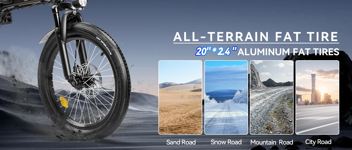 Tackle any landscape with confidence. The 20-inch fat tires provide exceptional grip and balance on sand, snow, gravel, or pavement. Built with anti-slip and anti-explosion features, they ensure both safety and a comfortable riding experience wherever you go.