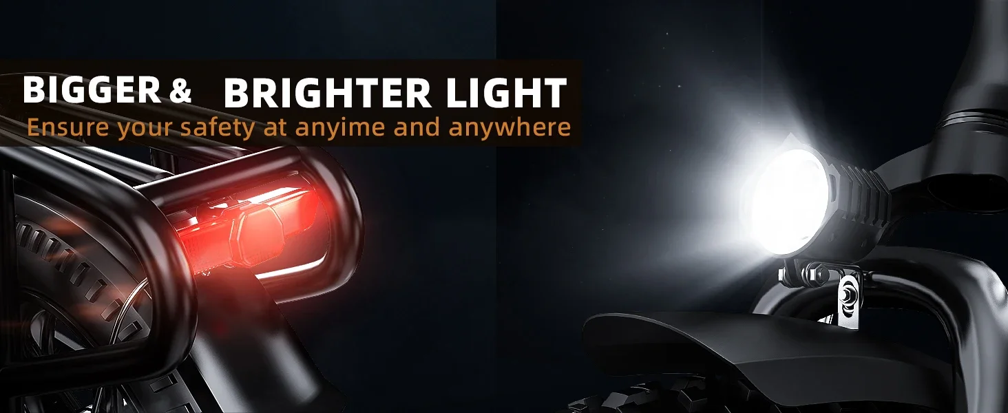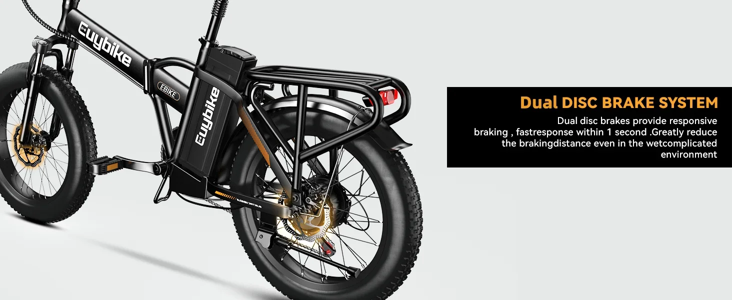 Lockable front fork suspension and shock-absorbing seat as well as anti-skid tires make the F6B electric bike an excellent riding experience on any terrain. The front and rear double disc brakes can brake quickly even in rainy and snowy days, making it safer.