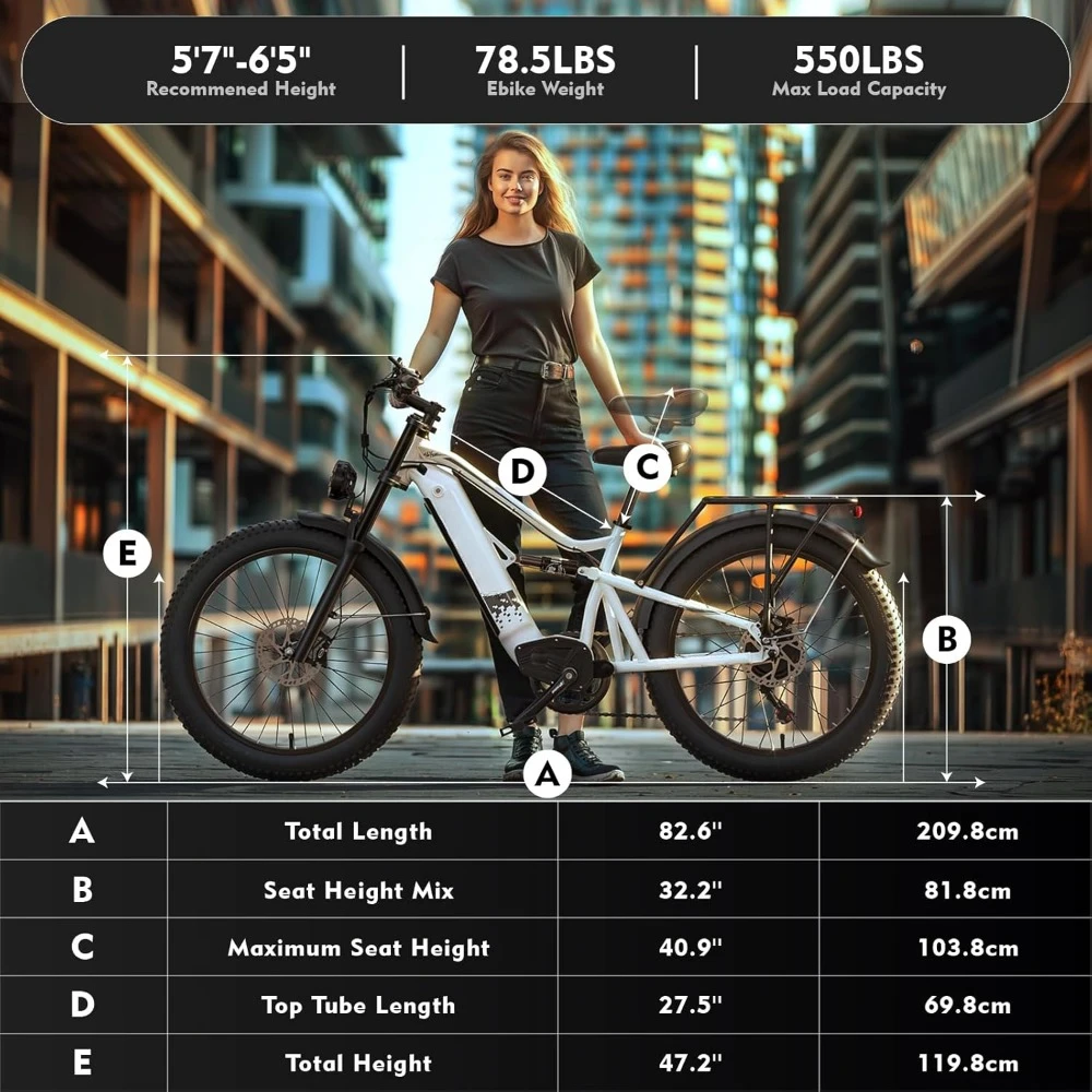 (750W High-Speed Brushless Motor) The 26-inch adult electric bicycle is equipped with a powerful 750W high-speed brushless motor, with a top speed of 32MPH and a huge torque of 80N·M, allowing you to easily conquer various rugged terrains.