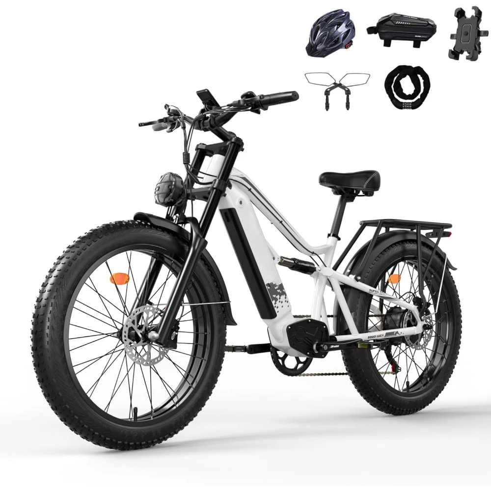 Additional accessories: By purchasing the dual moter ebike now, you will receive rearview mirror, helmet, mobile phone holder, ebike lock, and ebike bag