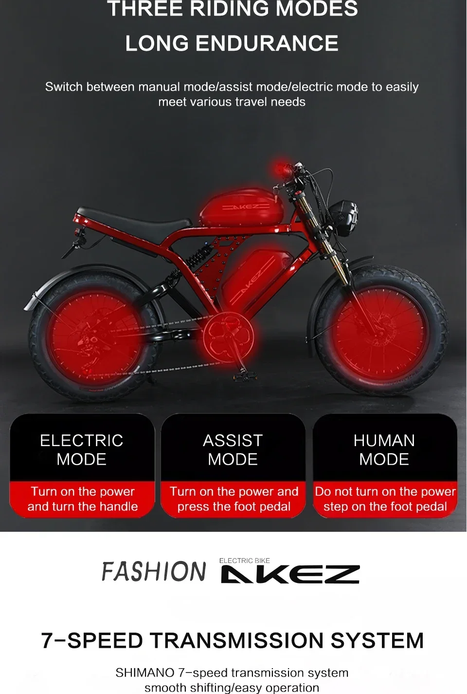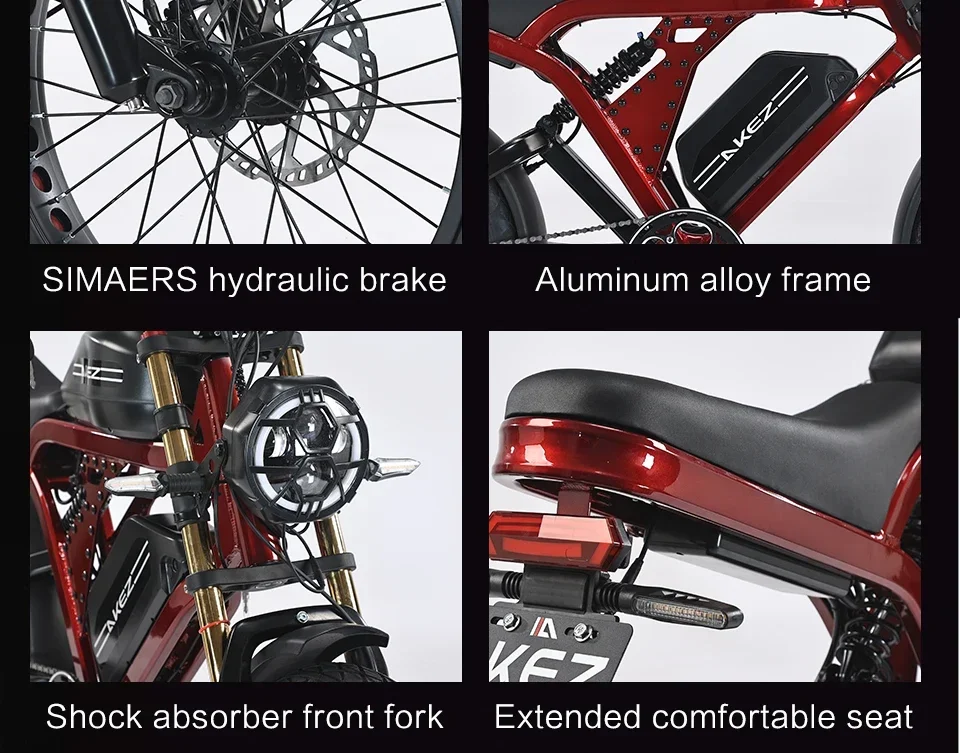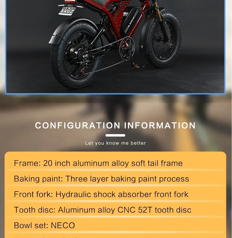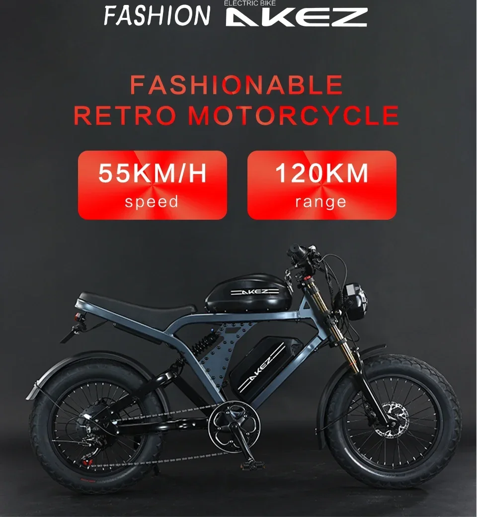 AKEZ 1500W Motor 52V City Ebike Aluminum Alloy Frame 20'' Off-Road Tires Long Range With 55Ah Dual Battery Electric Motorcycle