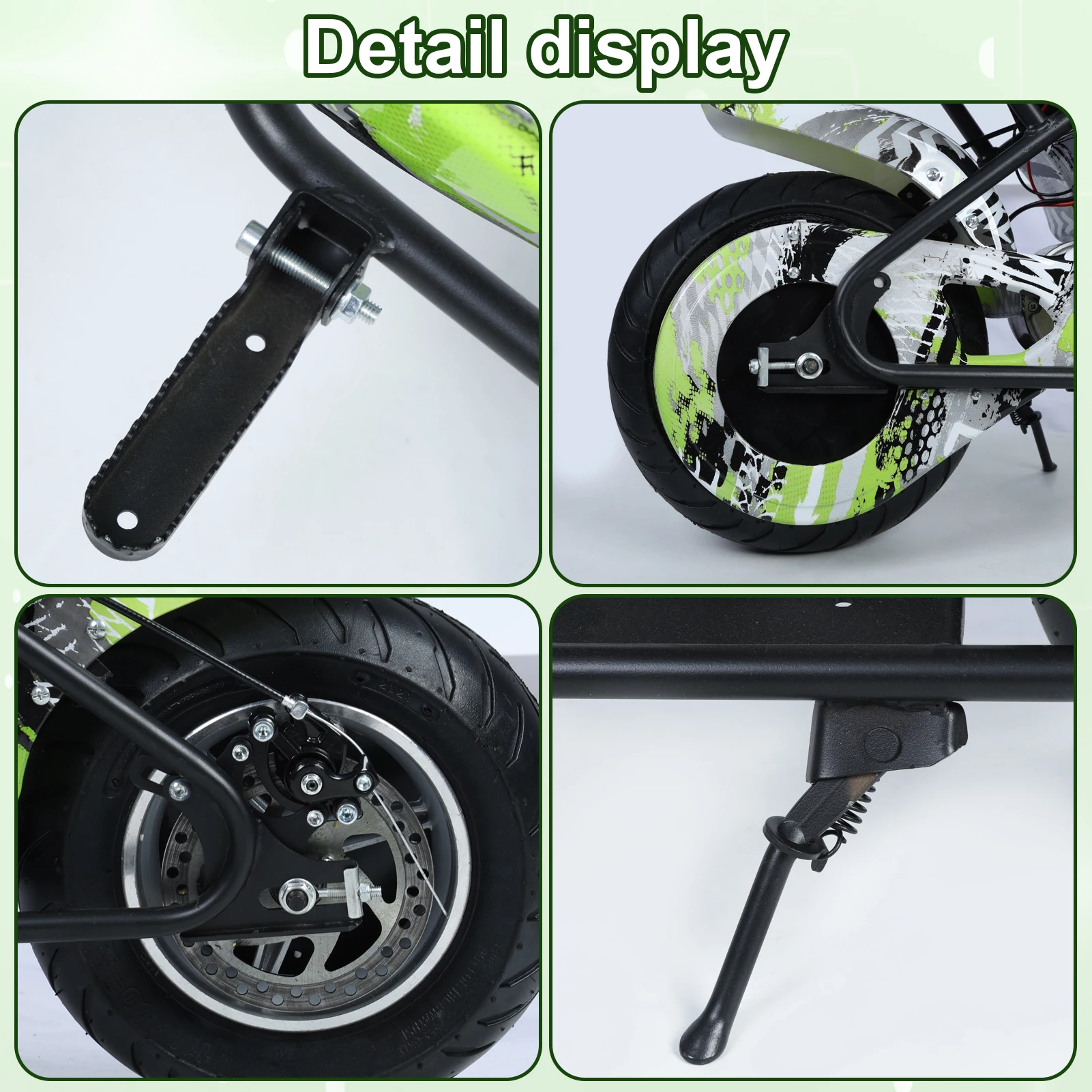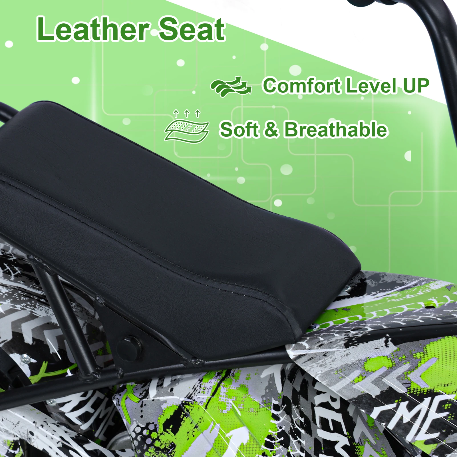 Rubber Tires & Faux Leather Seat: This dirt bike is equipped with high-quality rubber tires. The diameter of the wheels is 8", and the rubber tires are more wear-resistant. The seat is made of faux leather seat with high-density sponge inside, which is softer, breathable and conforms to the ergonomic design. Bring children to a more comfortable and extreme experience while driving.