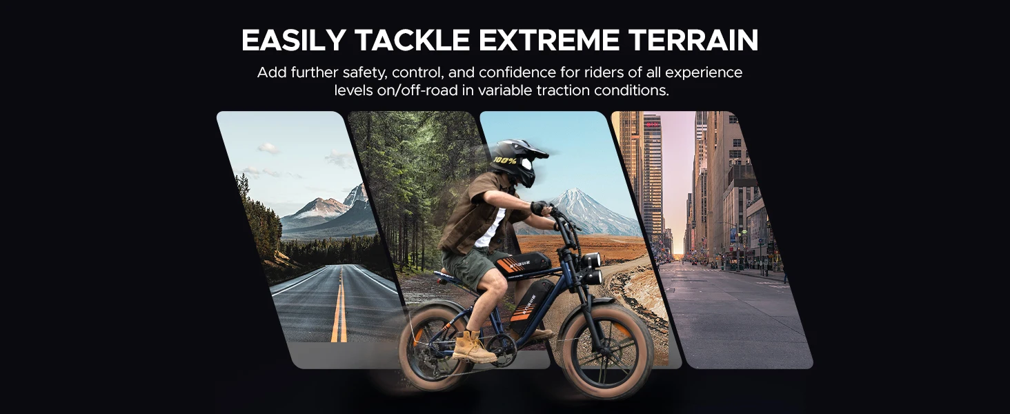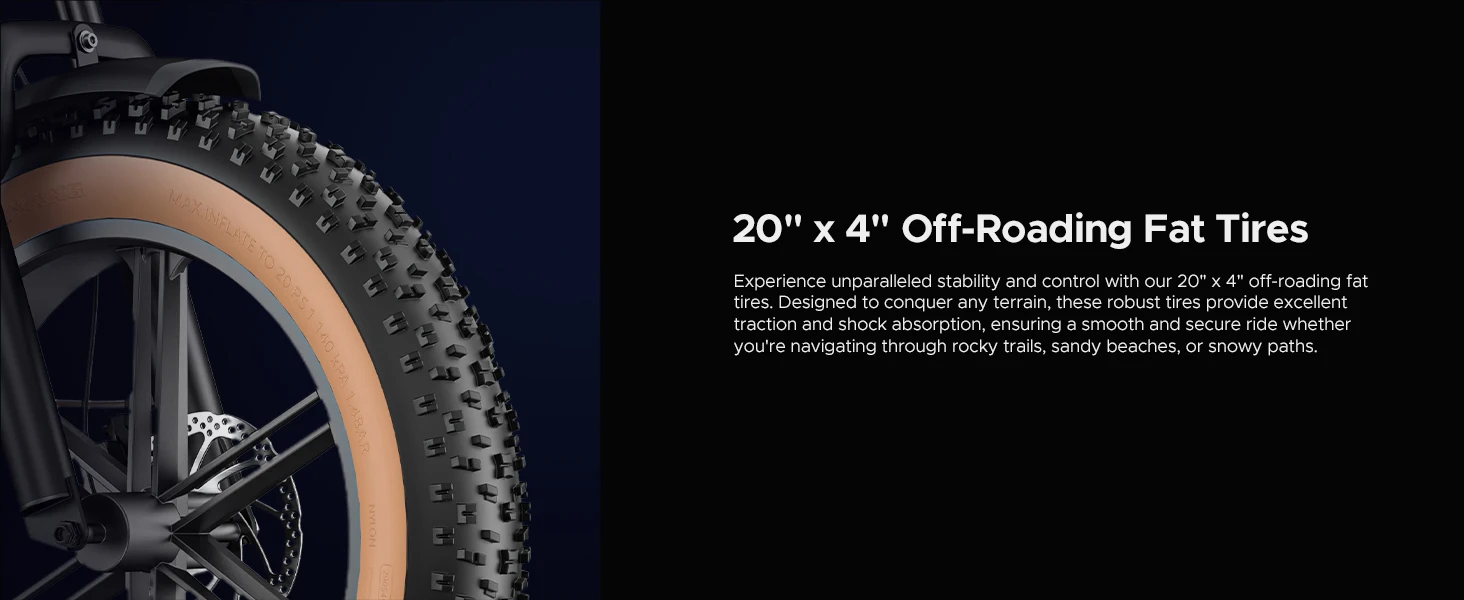 20*4.0 all-terrain tires provide excellent grip and stability on both city roads and mountain trails.