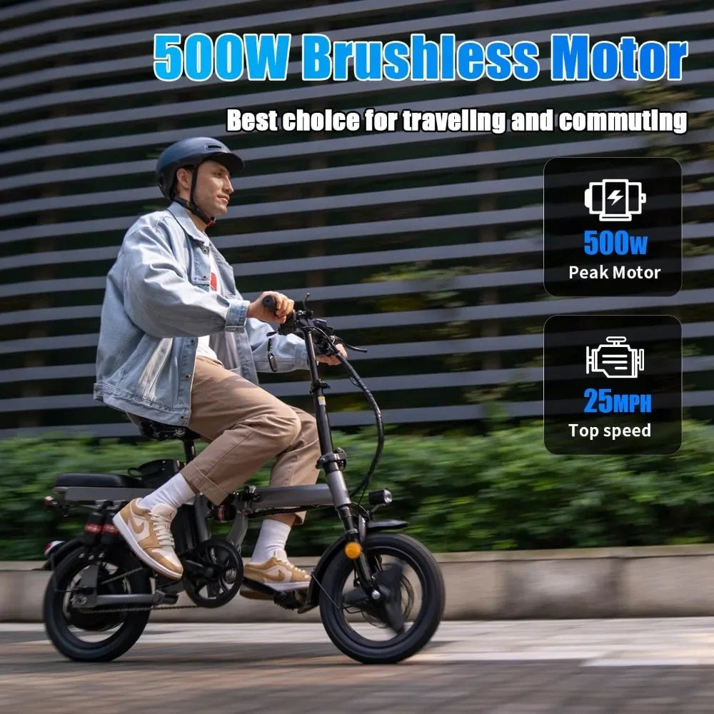 Folding Electric Bike, 500W Motor, Electric Bike for Adults, Up to 25 MPH and 30 Miles Long Range, 48V 15AH Removable Battery