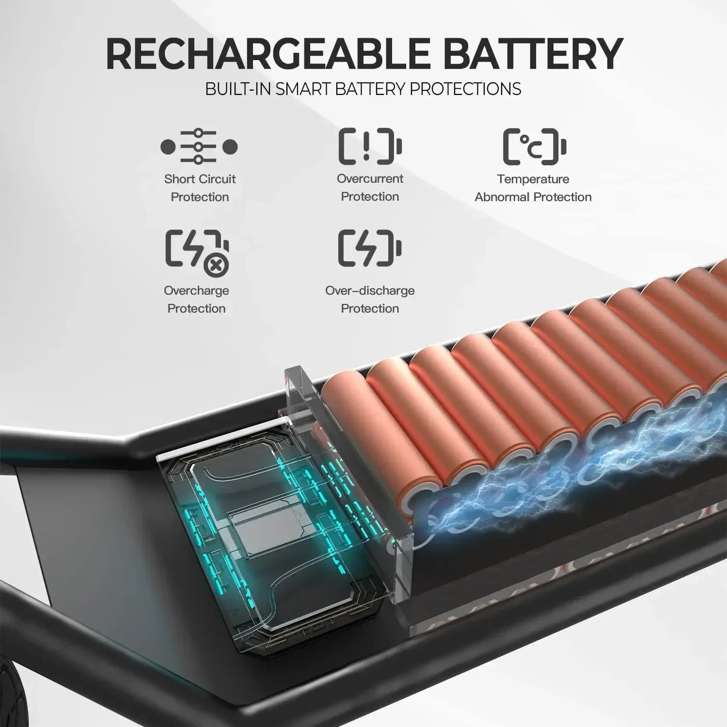 BATTERY CAPACITY: 36V 8.0Ah lithium-ion battery with intelligent overload and low voltage protection, charging time: 4 hours, with battery power display