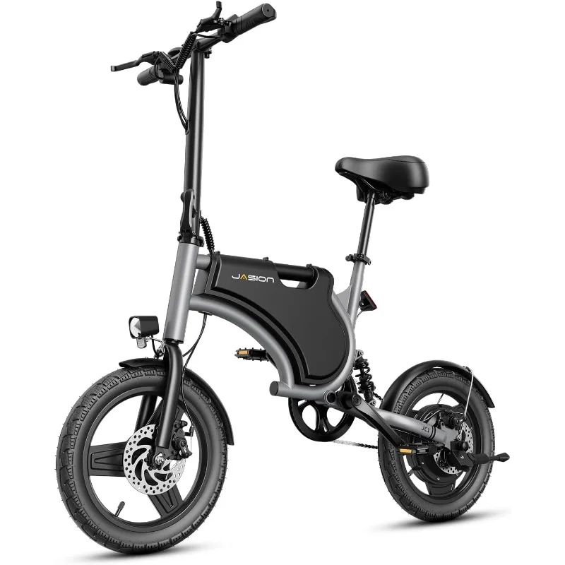 Jasion Electric Bike for Adults & Teens with 600W Peak Motor, 20mph, 20 Miles Range, 14'' Folding E-Bike with Rear Suspension
